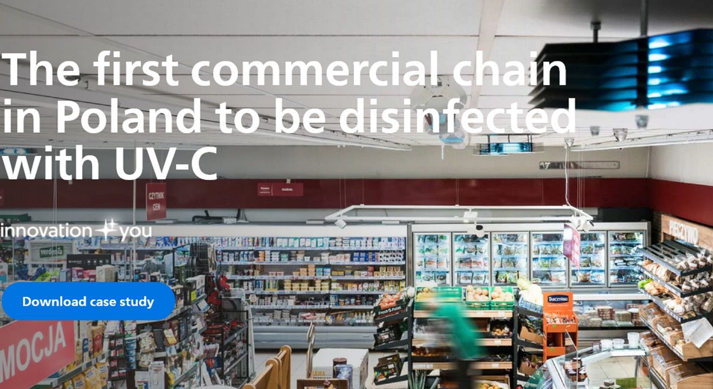 UVC air disinfection in retail setting, from https://www.lighting.philips.co.il/support/cases/food-and-large-retailers/dm-shops