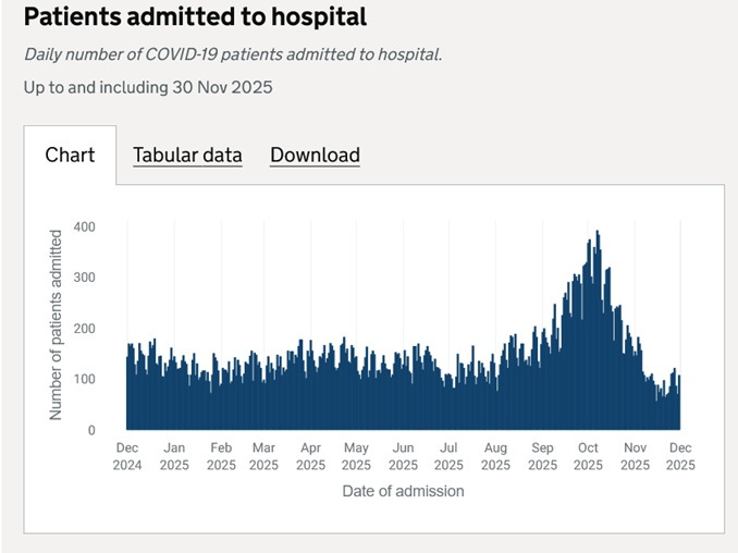 UKHSA COVID-19 Hospital admissions data year to December 2025
